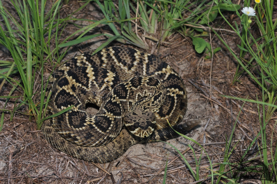 Our neighborhood is also home to the largest species of rattlesnake currently described by science. The Eastern Diamondback Rattlesnake is a large, heavy-bodied snake that can easily reach six feet in length with record holding animals closer to eight feet. The snake is overall tan or brown with the characteristic diamond pattern along the back. Found throughout the state of Florida, it generally is not found in wetland habitats, but can swim and has been observed crossing from coastal dunes on the mainland to barrier islands. Because of their size and dangerous venom, should you encounter of these, respect it from a distance because bites left untreated can be lethal.